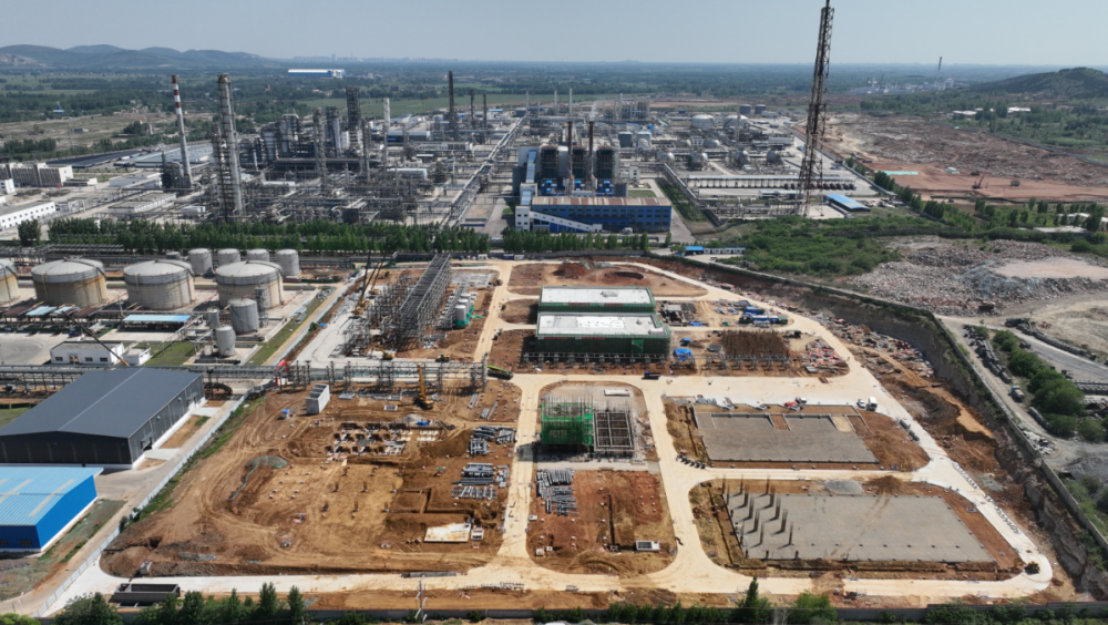 聯(lián)泓新科新能源材料和生物可降解材料一體化項(xiàng)目建設(shè)現(xiàn)場(chǎng)。(受訪者供圖)